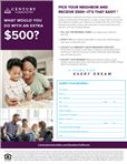 SUBMIT YOUR REFERRAL! Your Name ____________________________________________________ Phone________________________________________________________ Your Address __________________________________________________ City ______________________________________ State ____ Zip _______ Your Email ____________________________________________________ Referral Name _________________________________________________ Community of Interest ___________________________________________ Referral Address _______________________________________________ City ______________________________________ State ____ Zip _______ Community Sales Manager ________________________________________ CommunitySalesManager Signature_________________________________ Date ____________ PICK YOUR NEIGHBOR AND RECEIVE $500—IT’S THAT EASY! * Know someone looking to purchase a new home? If you’re a current Century Communities homeowner or under contract with us, fill out the form below to register your referral on or before their first visit. If they decide to purchase a home, we’ll send you a check when they close escrow—our way of saying thanks! 1. FILL OUT THE REFERRAL FORM , on or before your referral’s first visit. 2. DROP IT BY your nearest sales office or have your referral bring it with them on their first visit. 3. COLLECT A COMMUNITY SALES MANAGER’S SIGN-OFF At the time of contract to purchase a Century Communities home, remind your referral to have an on-site Community Sales Manager sign and date the form. 4. COLLECT YOUR REWARD! When your referral closes on their Century Communities home, we’ll send you a check for $500. Please allow 6–8 weeks for delivery.
